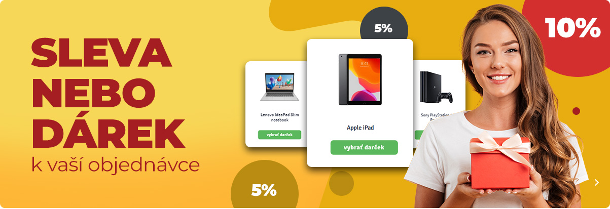 Obdarujte se dárkem z naší nabídky. Při nákupu v našem e-shopu se vám zobrazí hodnota, kolik vám chybí nakoupit, abyste si odemkli dárky z 1. kategorie. Minimální hodnota je 8 100Kč bez DPH. Pokud budete nakupovat více, vždy vás náš e-shop upozorní, ve které úrovni získání dárku se nacházíte. V košíku si můžete už přímo vybrat jeden z dárků, na který máte nárok. Můžete si vybrat pouze z odemčených dárků a je na vás ze které kategorie si ho vyberete. Náš výběr dárků je vskutku velký, ale můžete využít i nákupní poukázky do vámi vybraného nákupního centra. Odemknout si můžete až 7 kategorií s velmi zajímavými produkty. Po odeslání objednávky vám přijde potvrzovací email o objednávce a následně druhý email, ve kterém budete mít potvrzen vybraný dárek. Dárek nebude uveden na faktuře.