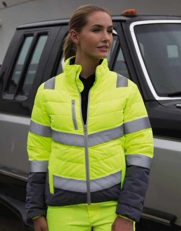 100% polyester (75D) podšívka a výplň (Grey): 100% polyester měkká na dotek, teplá a lehká stojací límec poutko na zavěšení uvnitř YKK dlouhý zip postranní, náprsní a vnitřní kapsy na zip konce rukávů odolné proti špíně úplet na spodním lemu a lemech rukávů snížený pas lehce vypasovaná vhodná pro výšivku 50 mm široké našité reflexní pruhy ISO EN2047:2013+A1, třída 2 RIS-3279-TOM (only Fluo Orange/Grey).