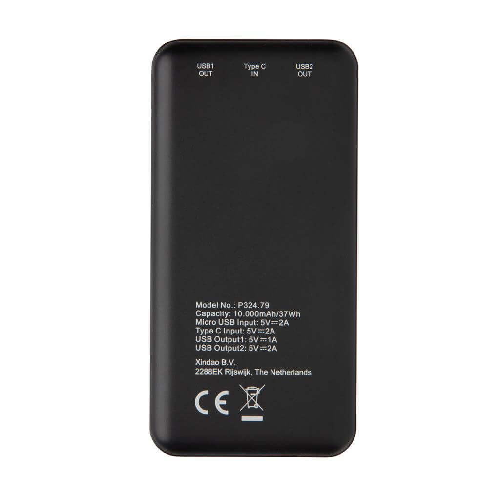 Mimořádně kompaktní, přesto výkonná powerbanka vyrobená z lehkého ABS je díky své kapesní velikosti ideální na cesty. Kvalitní lithium polymerová baterie řady A s vysokou hustotou a kapacitou 10 000 mAh plně nabije mobilní telefon 4-5x. Světelné indikátory stupně nabití. 2 USB výstupy pro současné nabíjení dvou zařízení. Vstup: 5V/2A. Výstup USB 1: 5V/2A; Výstup USB 2: 5V/1A. 1 baterie typu Li-polyv balení