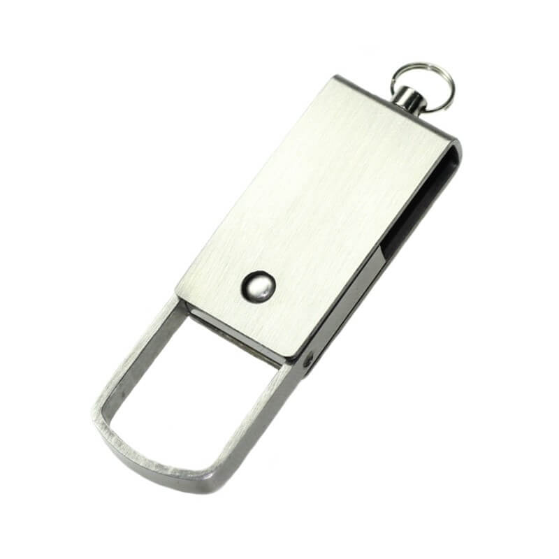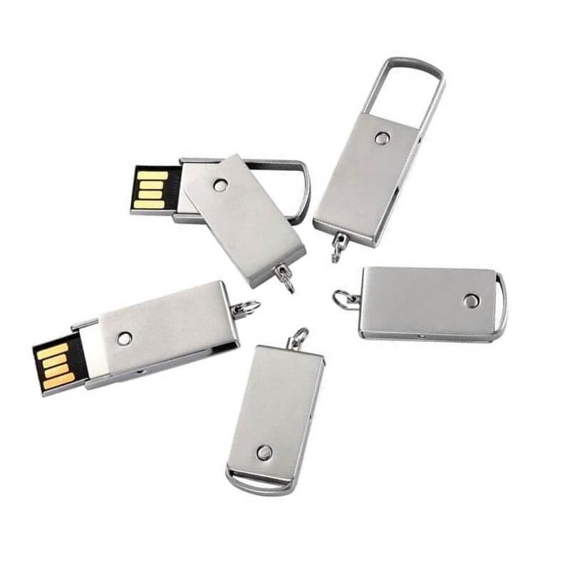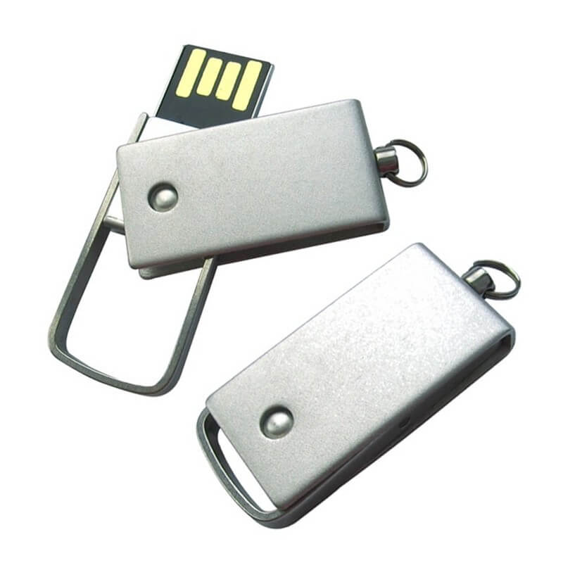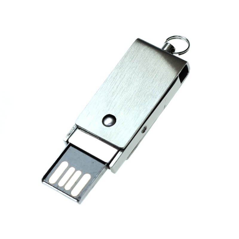 Moderní kovový mini USB flash disk s otočným konektorem. Vhodný pro laser loga, případně tampon tisk. Možno připojit šňůrku, kroužek, nebo karabinku.