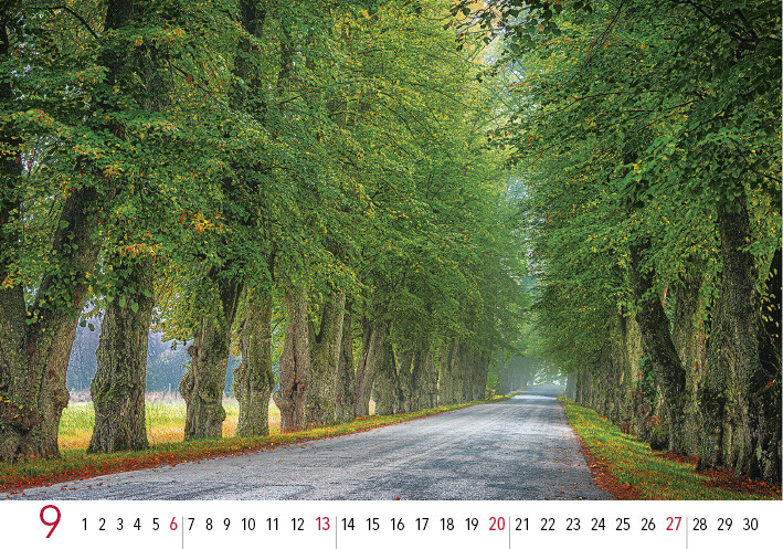 Kalendář Aleje vás každý měsíc potěší atmosférickými záběry alejí v různých ročních obdobích - od rozkvetlého jara přes zlatý podzim až po zasněžené zimní stezky. Každý snímek vyzařuje harmonickou rovnováhu mezi člověkem a krajinou. Ideální dárek pro milovníky přírody, procházek a chvil ticha.