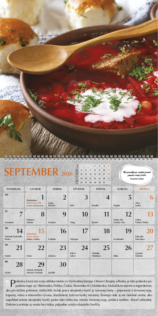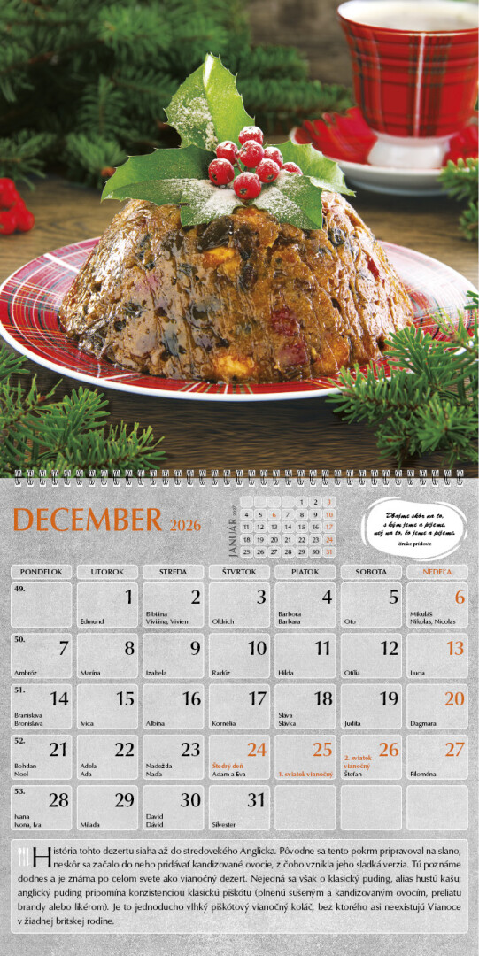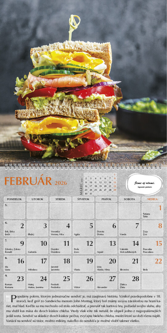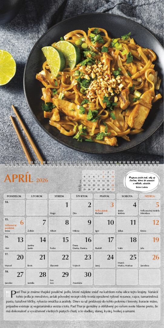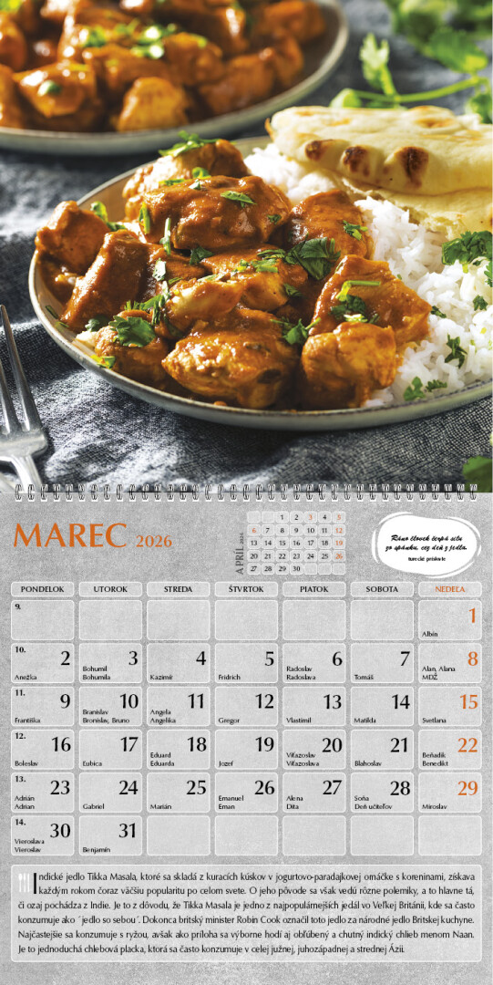 Objevte každý měsíc novou kulinářskou inspiraci! Kalendář Gourmet 2026 obsahuje 12 úžasných fotografií pokrmů z celého světa doplněných poutavými fakty, zajímavostmi a příběhy z kulinářského světa. Ideální dárek pro všechny milovníky jídla, kultury a cestování.