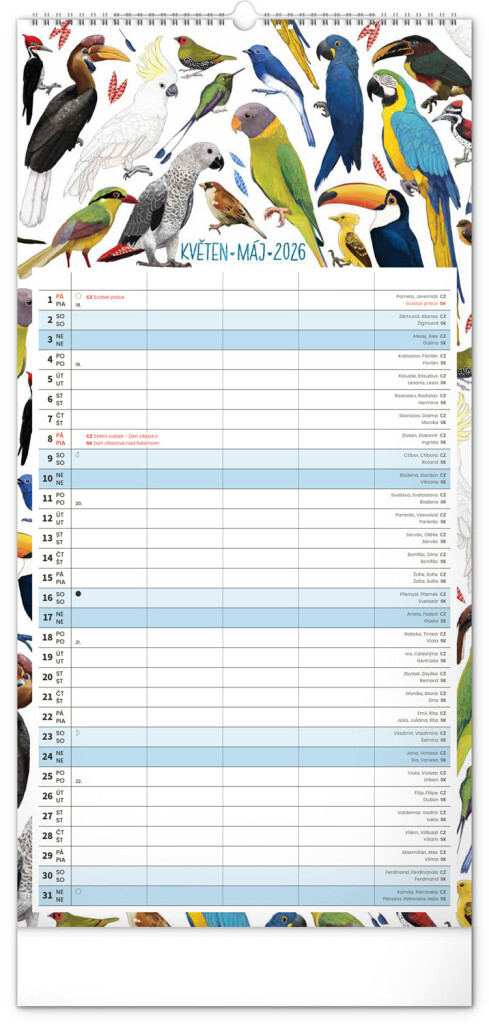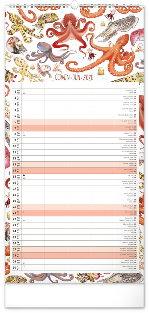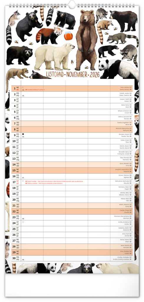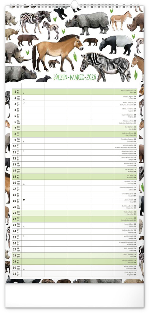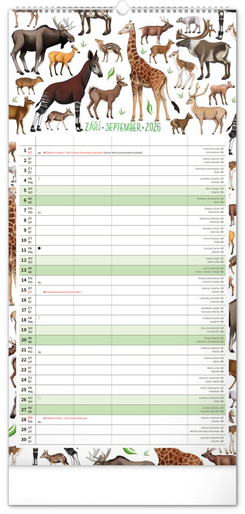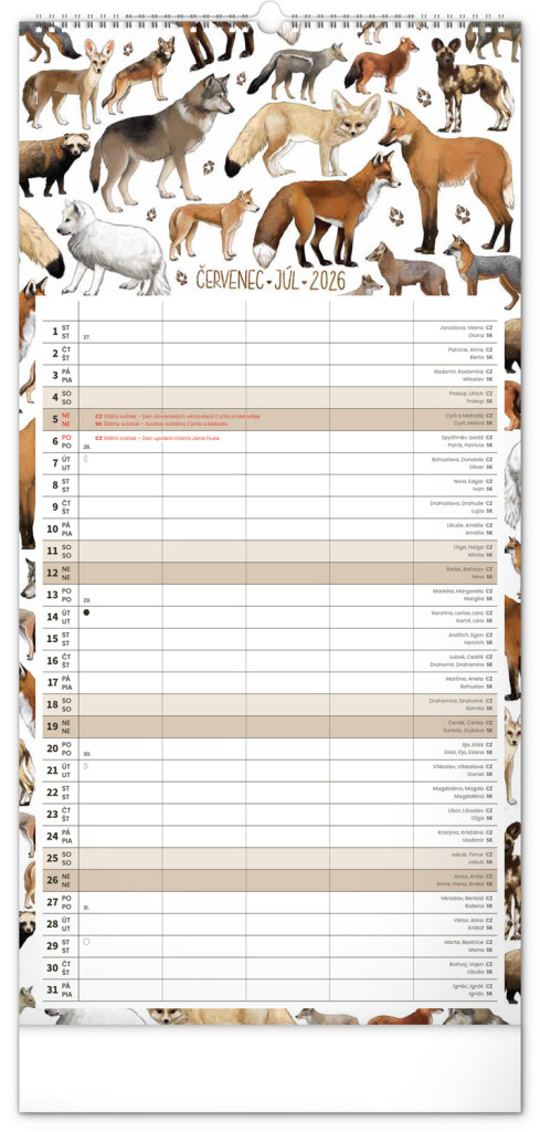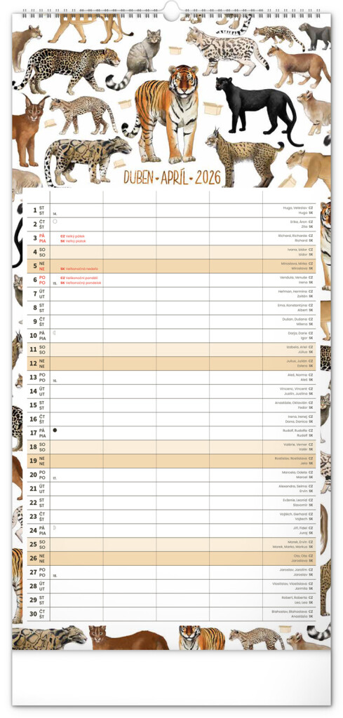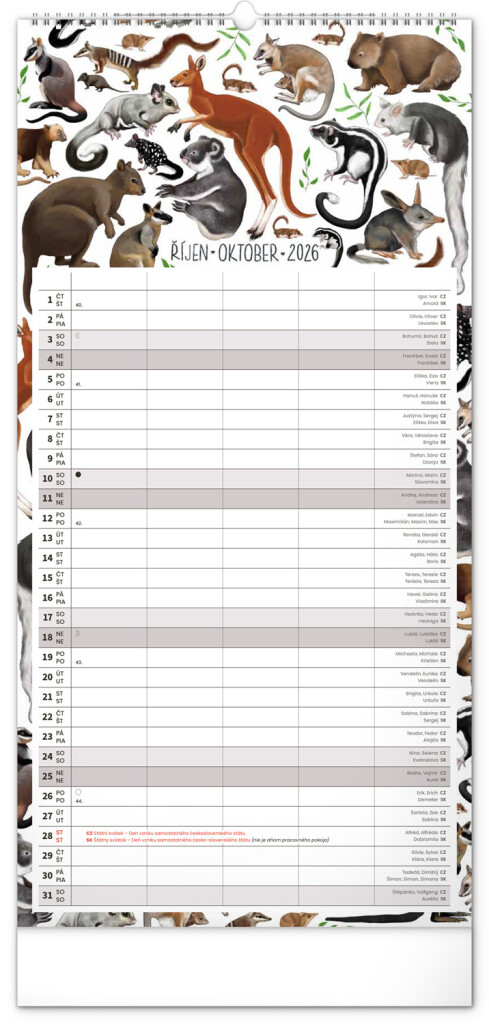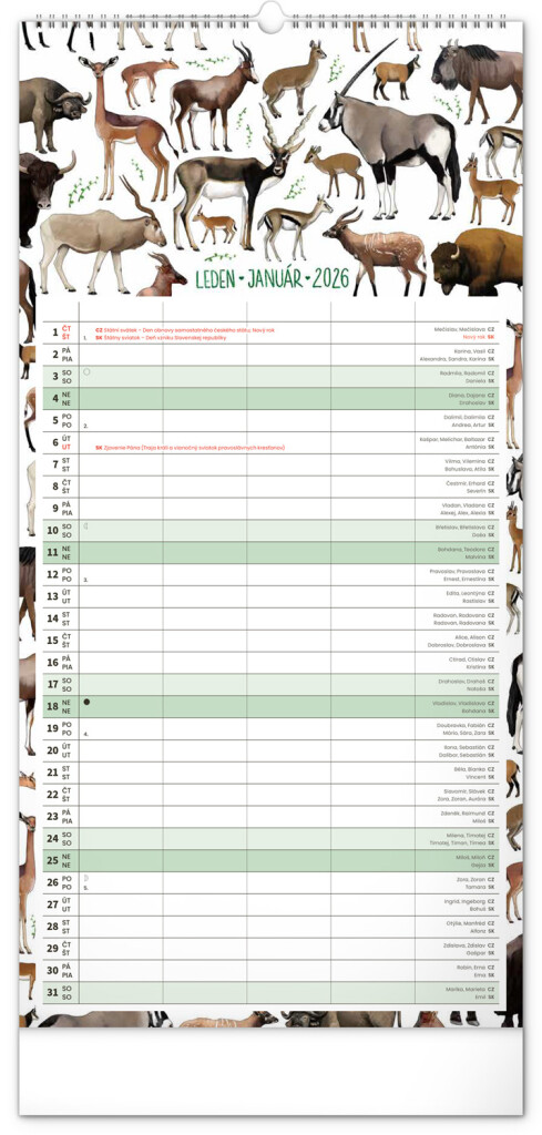 České a slovenské kalendáře a samostatný plánovač aktivit až pro čtyři členy domácnosti doplňují krásné ilustrace zvířat. Nechybí ani státní svátky a fáze měsíce.