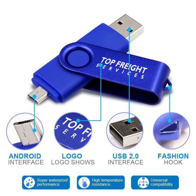 Nyní i s rozhraním USB 3.0 (super speed)! Multifunkční OTG USB flash disk s otočným konektorem a micro USB konektorem pro připojení k mobilnímu telefonu. Kombinace plastového těla a kovového klipu. Plastovou část lze vyrobit v mnoha různých barvách, včetně vlastní, dle PANTONE vzorníku. Vhodný pro potisk, nebo laser loga. Možno připojit šňůrku, kroužek nebo karabinku. OTG flash disky spolupracují s mobilními telefony a tablety, které podporují funkci OTG (Android 4.3 a vyšší - většina zařízení vyrobených od roku 2012). Díky této funkci tak můžeme snadno zvýšit kapacitu jejich paměti, či jednoduše přenášet fotky a další data.