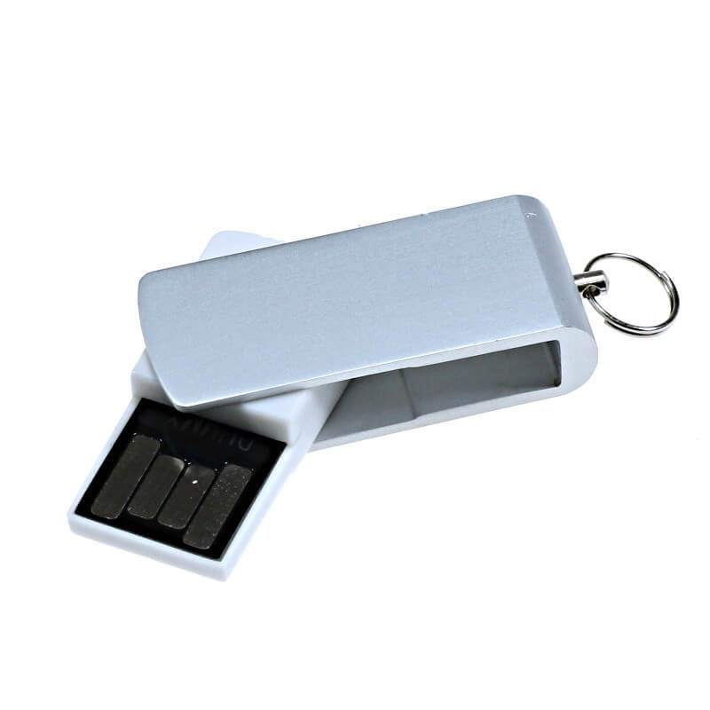 Otočný mini USB flash disk. Kombinace kovu a plastu. Oblíbený mini formát ve velmi zdařilém provedení a designu. Vhodný pro potisk, nebo laser loga. Možno připojit šňůrku, kroužek, nebo karabinku.