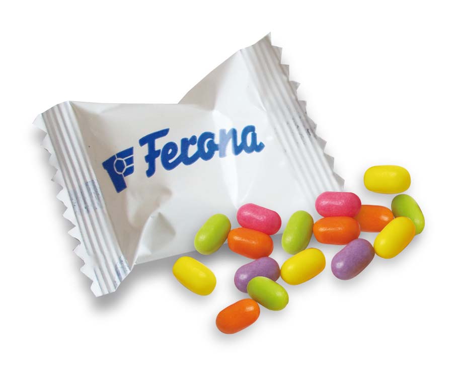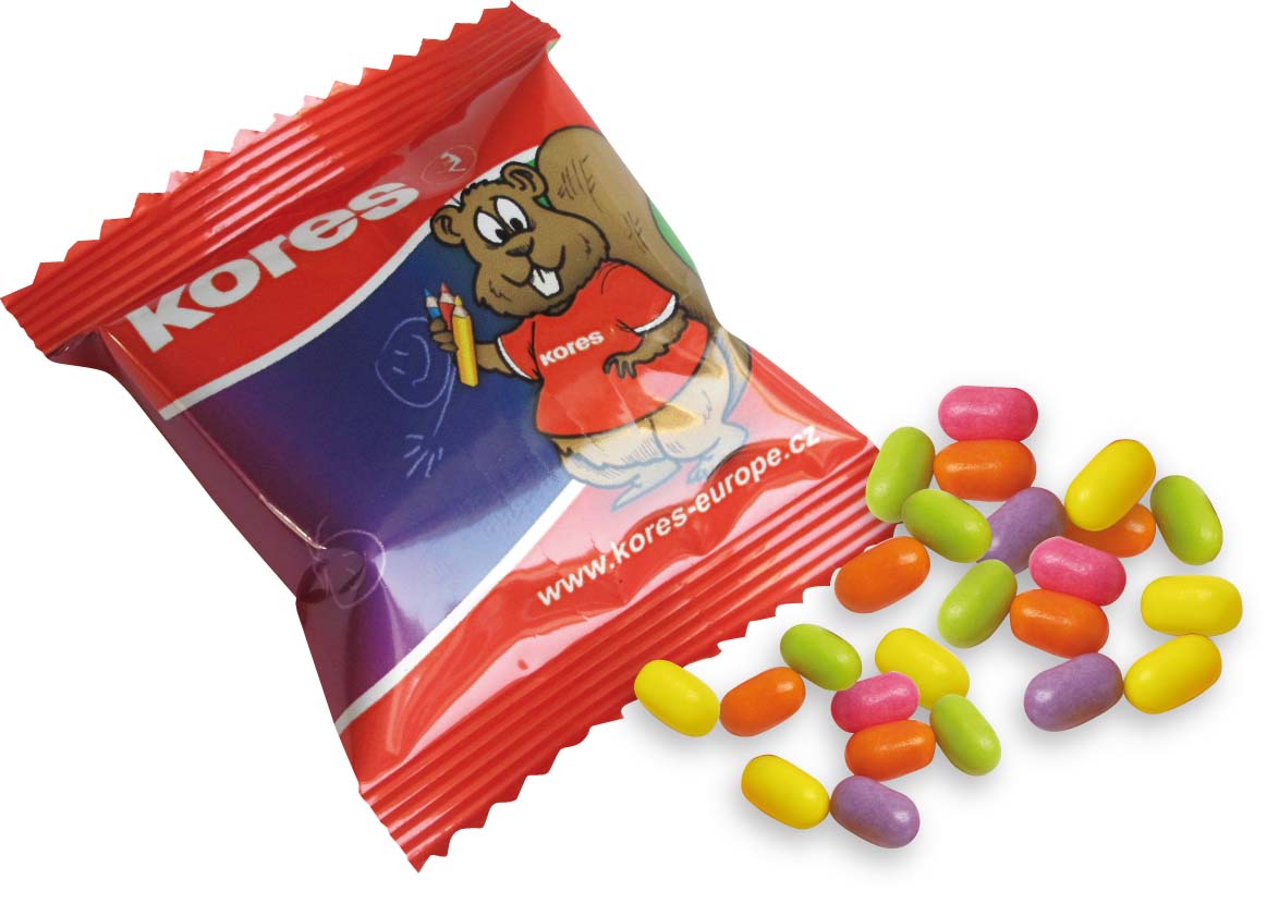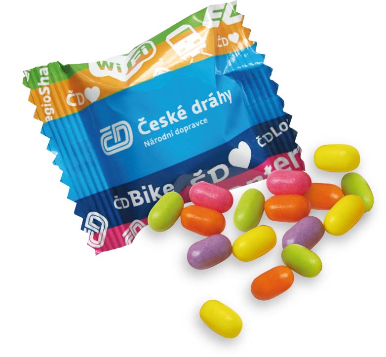 Ovocné draže v kapse v mixu ovocných příchutí. Dražé je baleno v celopotisknutelných sáčcích v různých objemech.