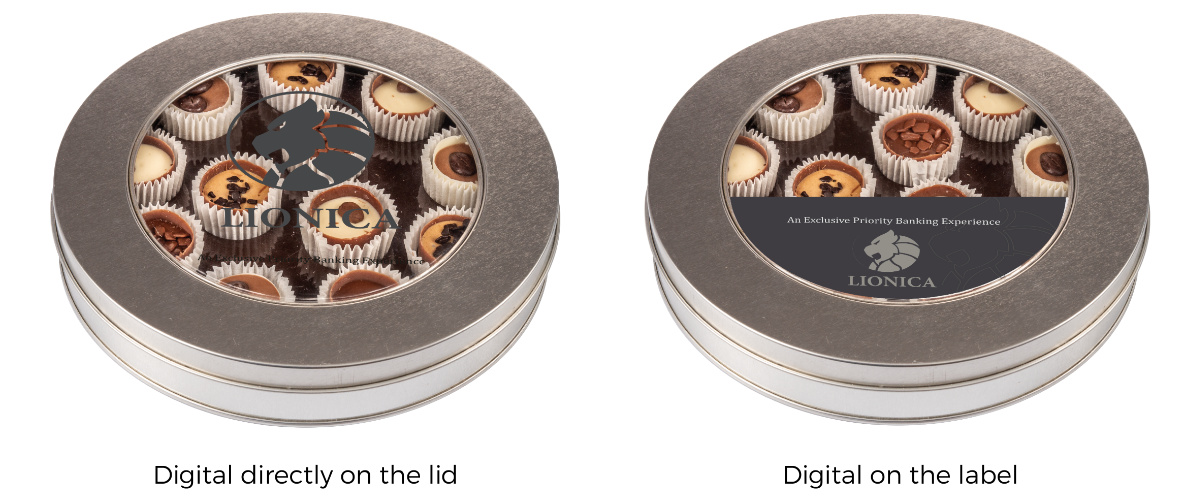 Jedinečný design s neuvěřitelně vychucenými pralinkami ve 12 příchutích. Pralinky se nacházejí v kovové krabičce s okénkem. Na víčko je možný nálepka nebo přímý digitální potisk. Waw efekt, na který se jen tak nezapomene.