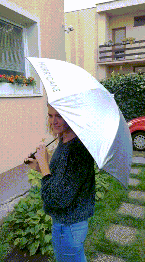 Dnešný blog sa mi nechce písať veľmi predajne. Píšem ho v dobe, keď sa znovu všetci zatvárame v našich bytoch a domoch a to je v kombinácii s blížiacimi sa Vianocami celkom slušná príprava na depky. Rozhodol som sa teda dnešnú tému dáždniky a pršiplášte trošku odľahčiť. Na úvod som teda pripravil gifko s kolegyňou Miškou. Samozrejme s dáždnikom, ktorý sme potláčali pre nášho klienta.