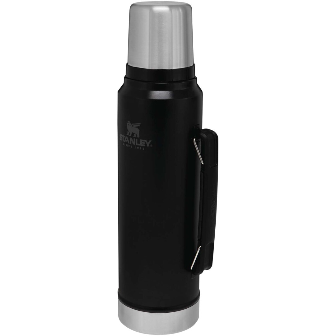Litrová fľaša Stanley má odolnú konštrukciu a vákuovú izoláciu, ktorá udrží nápoje horúce alebo studené po dobu 24 hodín. Fľaša je dostatočne štíhla na držanie jednou rukou a má otočné veko pre ľahké nalievanie. Izolované viečko môže tiež slúžiť ako šálka na pitie. Fľaša je vhodná do umývačky, nepriepustná, odolná proti potu, rozbitiu a ľahko sa čistí. Nerezová oceľ.