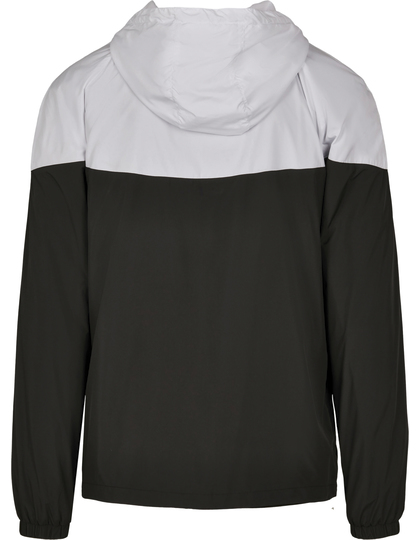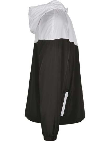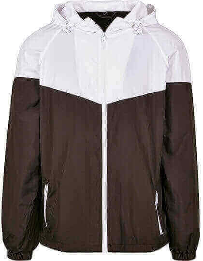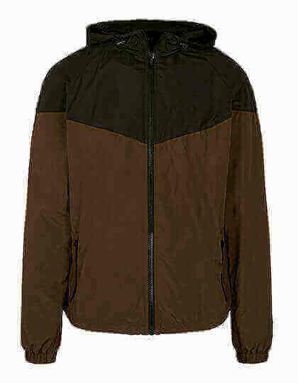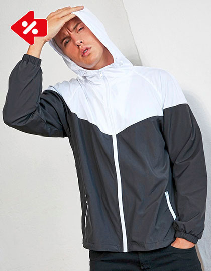 Farebne rozdelená bunda: ramenná časť je odlišná. Raglánový strih. Kapucňa so sieťovanou podšívkou so sťahovacou šnúrkou so zarážkami. Bočné vrecká na zips. Elastické manžety na rukávoch a leme. Predná strana s prepínacím zipsom.
