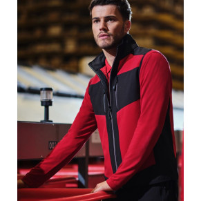 Materiál: 260g/m², 96% polyester, obsahuje minimálne 50% recyklovaného polyesteru (rPet), 4% elastan, tkaný softshell. Hrejivé vnútro, vetruodolný a vodoodpudivý materiál, lemované, elastické manžety v prieramkoch, na spodnom leme a golieri, 2 bočné vrecká so zipsom, 2 náprsné vrecká na zips, reflexný detail.