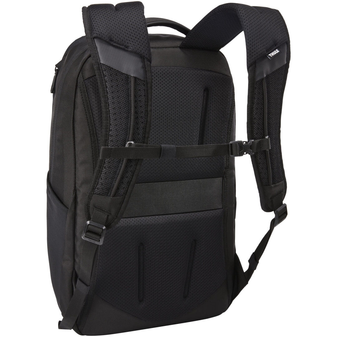 Profesionálny ekologický cestovný batoh so samostatnými priehradkami na 15" MacBook® alebo 15,6" notebook a 10" tabliet. Obsahuje skrytú priehradku SafeZone pre ochranu telefónu, slnečných okuliarov alebo iných drobných predmetov. Niekoľko vreciek na ukladanie doplnkov, sieťované popruhy EVA a nastaviteľný hrudník popruh zaisťujú pohodlné nosenie.