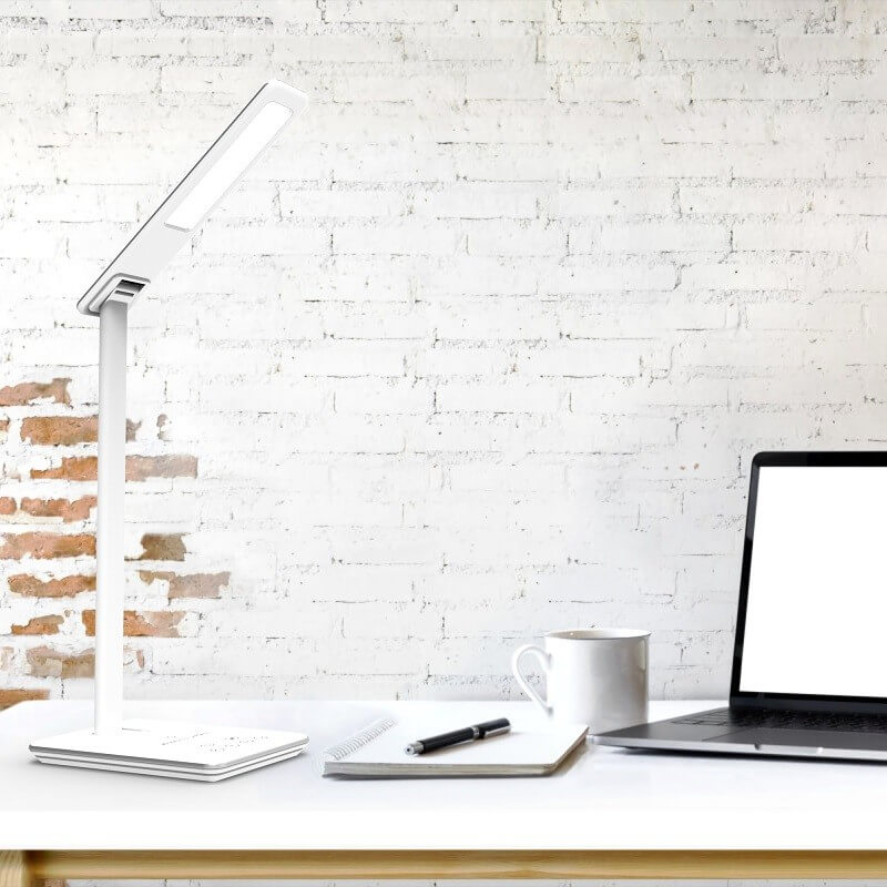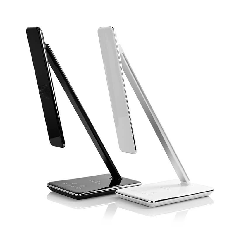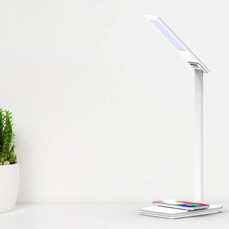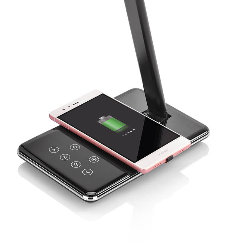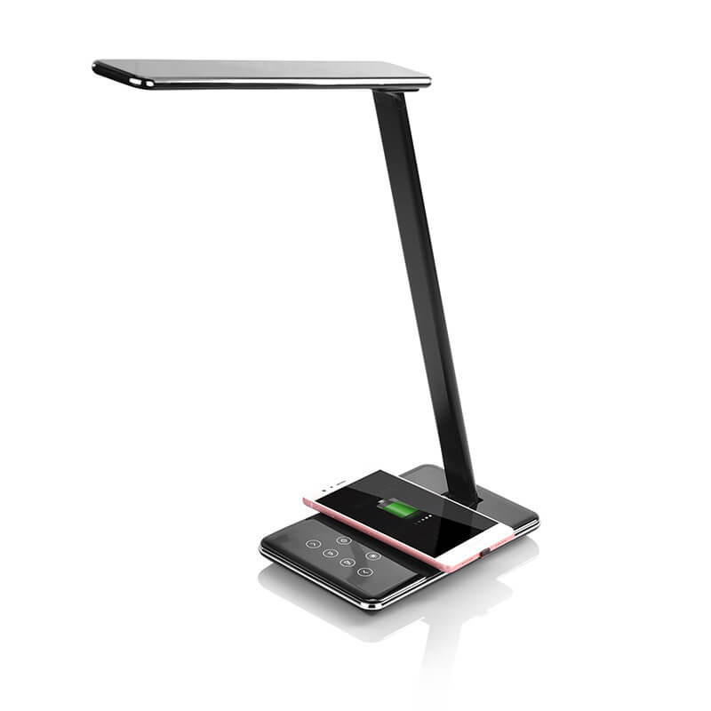 Medzi praktické vybavenie každého stola perfektne zapadne 2v1 dotyková stolná lampa s bezdrôtovou nabíjacou podložkou. Moderný luxusný design je podporený voľbou kvalitného LED osvetlenia so 48 diódami. Lampa vydrží svietiť až 50000 hodín. Na nabíjanie využijete základňu s bezdrôtovou technológiou. Mobilný telefón stačí iba položiť a už prebieha napájanie. K dispozícii je aj USB výstup pre klasické nabíjanie. Lampu je možné pripojiť cez kábel k PC, avšak plne jej funkcie využijete pri zapojení do siete cez sieťový adaptér. Lampa taktiež ponúka voľbu farby svetla (bielej alebo žltej), nastavenie intenzity svetla a možnosť nastaviť dobu automatického vypnutia (1 alebo 2 hod.). Na výber máte z čiernej a bielej varianty, ktoré je možné dozdobiť aj vlastnou potlačou.