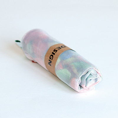 Na mieru ušitá súprava 3 sieťovaných vrecúšok na čerstvé potraviny vyrobená z RPET sieťoviny (certifikovaná pre styk s potravinami, FCA) s farebnou polyesterovou šnúrou. Balené v prispôsobiteľnom papierovom obale. 1-4 farebná potlačená etiketa alebo tkaná etiketa (cca 4x4cm) je v cene. Každá taška môže mať iný dizajnový štítok. Rozmery vrecúšok: 20x30cm, 35x30cm a 40x30cm (Vzhľadom na povahu materiálu majú veľkosti toleranciu do 2cm.). Ručne umývateľné