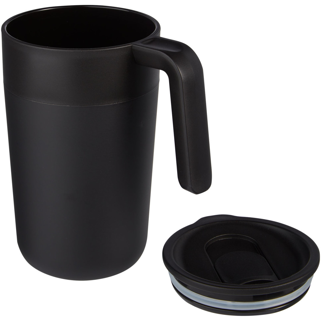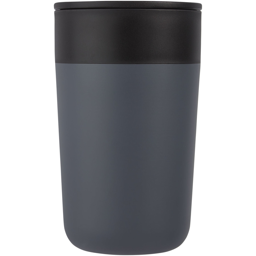 Štýlový hrnček Nordia je skonštruovaný s vonkajším povrchom z nerezovej ocele a udržateľným recyklovaným vnútrom z PP. Vnútorné viečko, posuvný uzáver a rukoväť sú tiež vyrobené z recyklovaného PP z certifikovaných a zodpovedných zdrojov. Viečko je nepriepustné a má posuvný uzáver, takže je tento hrnček ideálny na vychutnávanie nápojov na cestách. Bez BPA a testované a schválené podľa nemeckej legislatívy pre bezpečnosť potravín (LFGB), testované na obsah ftalátov podľa predpisov REACH. Objem je 400 ml. Neodporúča sa umývať v umývačke.