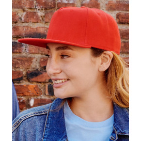 Materiál: 300g/m², 100% recyklovaný polyester-keper. Udržateľný nástupca k modelu Snap Five, plochý šilt, recyklovaný buckram, potný pásik z recyklovaného polyesteru, laminované predné panely, obšité vetracie otvory, recyklovaný snap uzáver, štítok TearAway, ručné pranie, nemožno žehliť, nemožno sušiť v sušičke.