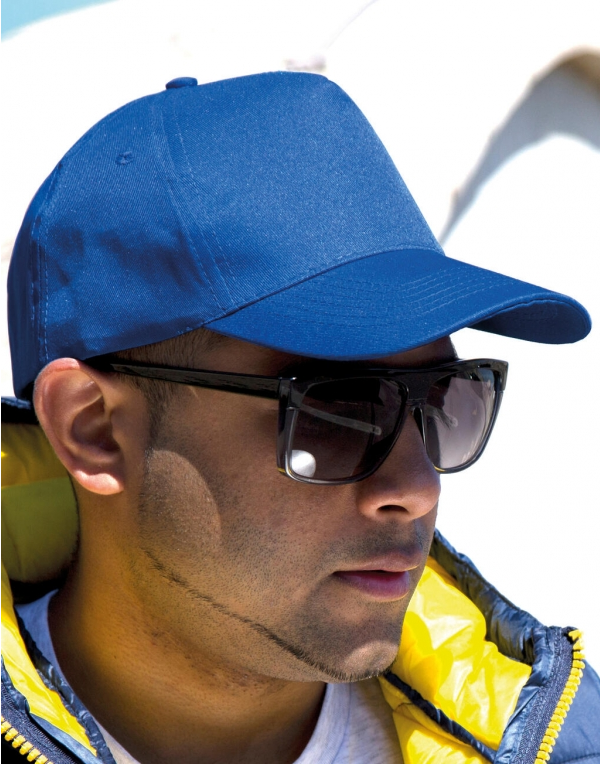 ·5 panelová ·spevnený predný panel bez švov ·zahnutý šilt, 6-krát prešívaný ·obšívané vetracie očká ·nastaviteľná veľkosť pomocou zapínania na suchý zips ·štítok možno odstrániť ·