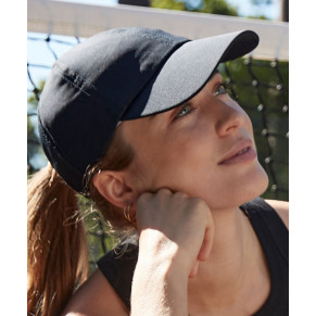 Predtvarovaný šilt, ľahký a priedušný materiál, kovové zapínanie, posuvník so zapínaním na gumičku, s otvorom na cop, štítok TearAway, čistiť hubkou, nemožno žehliť, nemožno sušiť v sušičke, nemožno chemicky čistiť.