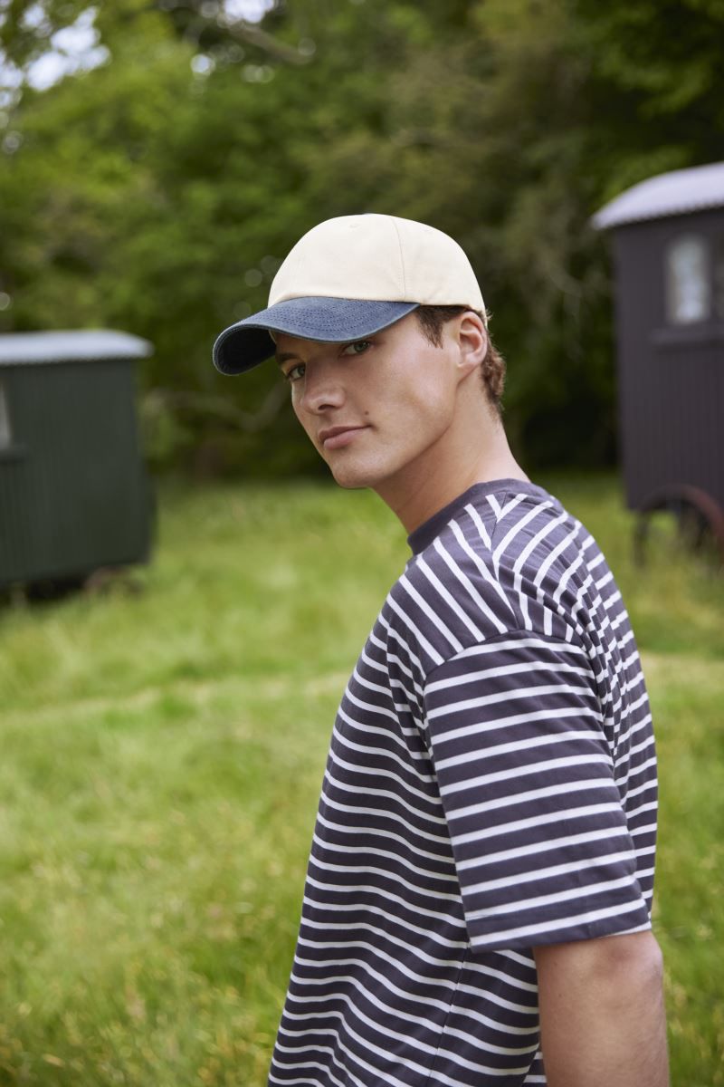 Nízky profil, vintage vzhľad, šilt v kontrastnej farbe, predtvarovaný šilt, mäkká, neštruktúrovaná oblasť hlavy, obšité vetracie otvory, látkový pásik s mosadznou sponou ako zapínanie, štítok TearAway, iba čistiť hubkou, nesmie sa prať.