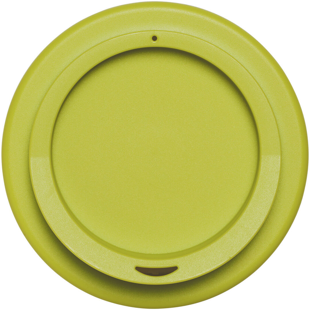 Dvojstenný pohár s tepelnou izoláciou a nasadzovacím viečkom. Pohár je vyrobený zo 100% recyklovaného PP plastu, viečko je vyrobené z potravinárskeho PP plastu. Vzhľadom k tomu, že viečko nie je vyrobené z recyklovaného materiálu, možno ho objednať v širokej škále rôznych farieb. Odtieň čiernej farby na tégliku sa môže líšiť v závislosti na použitom recyklovanom materiáli. Objem 350 ml. Vyrobené v UK. Obal možno kompostovať v domácich podmienkach. PP plast.