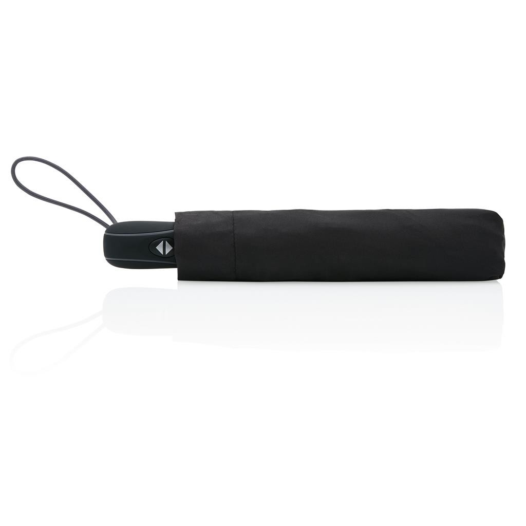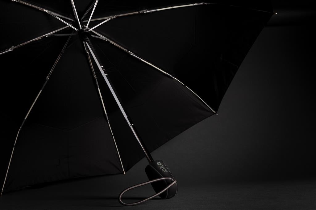 Automatický 3-sekčný dáždnik Swiss Peak vyrobený zo 190T recyklovaného polyesteru AWARE™. Využitie technológie AWARE™ garantuje skutočné použitie recyklátu. Telo z chrómovaného hliníka, vetruodolná konštrukcia zo sklolaminátu. Automatické otváranie, manuálne zatváranie. Vrátane vlastného puzdra na dáždnik. Balené v darčekovej krabičke Swiss Peak.