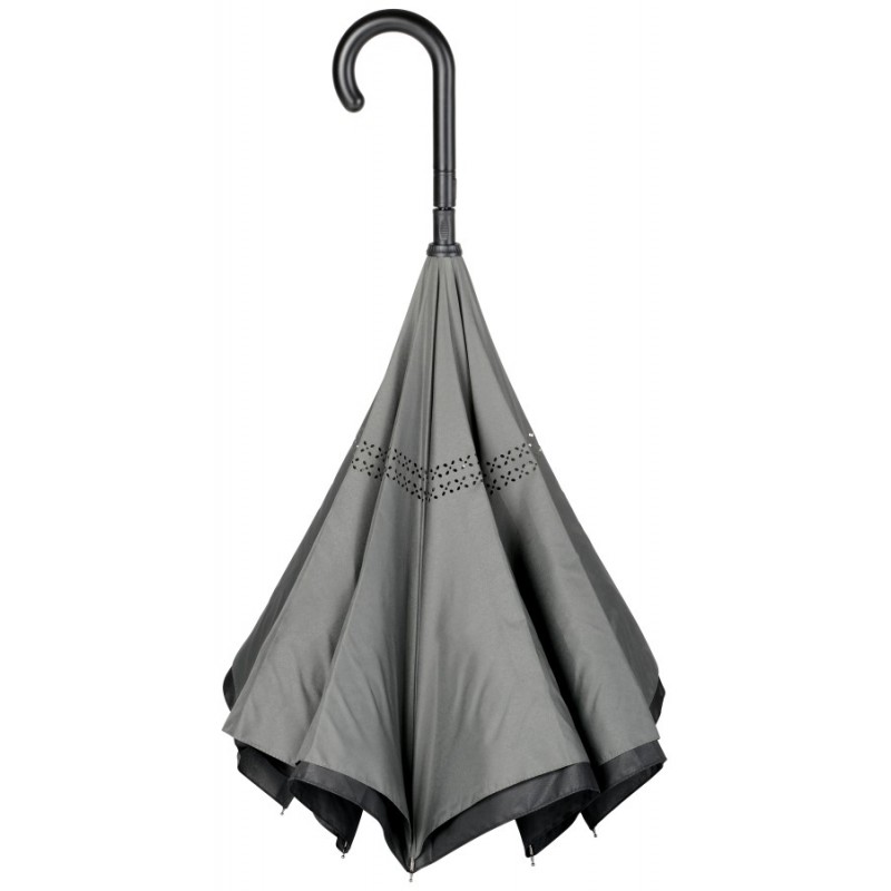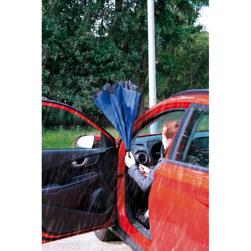 Automatický dáždnik OPPOSITE s pevnou rúčkou, s obráteným otváracím a automatickým zatváracím mechanizmom, dvojitý plášť s ventilačným otvorom na zamedzenie zadržiavania vzduchu, kovová tyč, sklolaminátové rebrá s kovovými hrotmi, plastová rúčka, plášť z polyesterového pongee, zatváranie na suchý zips.
