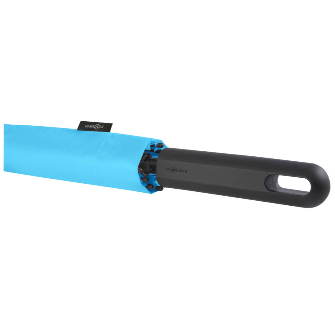 23" dáždnik Noon s automatickým otváraním. Dáždnik Noon s funkciou automatického otvárania a vodeodolnou úpravou poskytuje maximálnu flexibilitu za nepriaznivého počasia. Kovové kopije, rebrá zo skleného vlákna a mäkká, gumová rukoväť vydrží každú búrku. Súčasťou je puzdro.