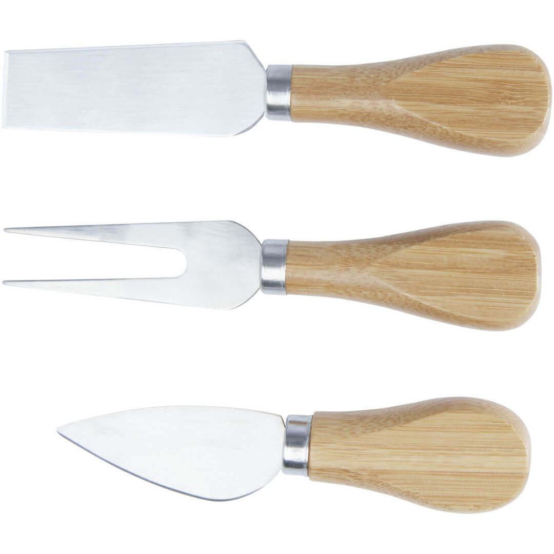 Podávanie syrového taniera po dobrej večeri príde vždy vhod, a s touto sadou máte všetko, čo potrebujete. Sada sa skladá z bambusovej dosky na syr (22,8 × 18 × 1 cm), štandardného noža na syr (12,5 × 2,5 cm), obdĺžnikového noža na syr (12,5 × 2,7 cm) a vidličky na syr (13,5 × 2,4 cm). Použitý bambus sa získava a vyrába v súlade so zásadami udržateľnosti.