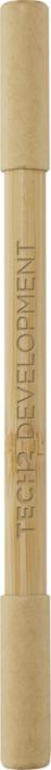Bambusové duo pero Samambu má dve strany: 1 guľôčkové pero a 1 bezatramentové pero. Bezatramentová strana nevyžaduje atramentové bombičky ani náplň. Grafitovo čierna špička pera je navrhnutá tak, aby zanechávala viditeľné stopy pri kontakte s povrchom na písanie. Výber pera vyrobeného z bambusu je udržateľnejšie rozhodnutie a podporuje používanie obnoviteľných materiálov. Guľôčkové pero má modrý atrament, veľkosť hrotu 1,00 mm a dĺžku písacej stopy 600 metrov. Dĺžka písacej stopy bezatramentového pera: 1500 metrov.