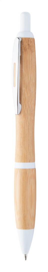 Guľôčkové pero z bambusu s barevnými plastovými částmi a kovovým klipem, s modrou náplní.