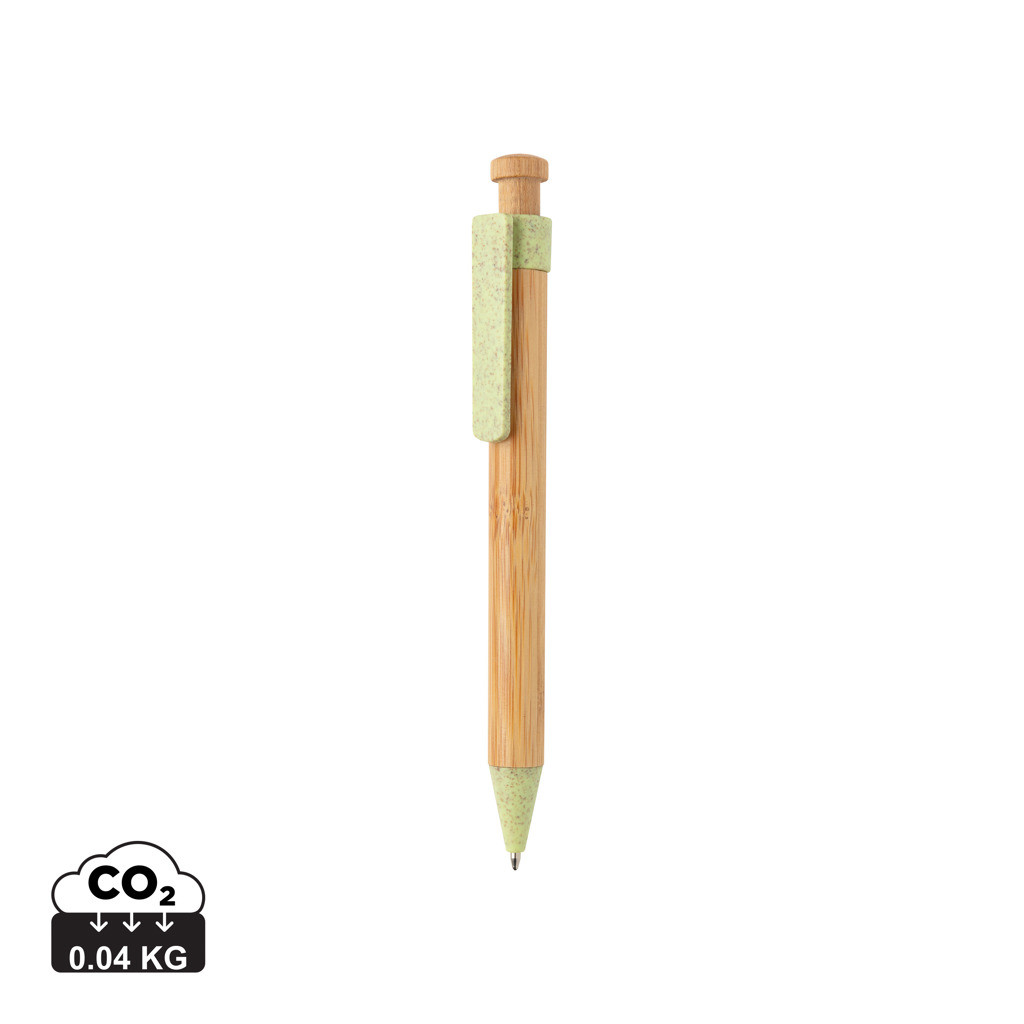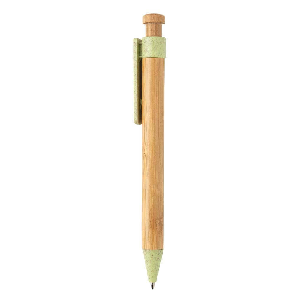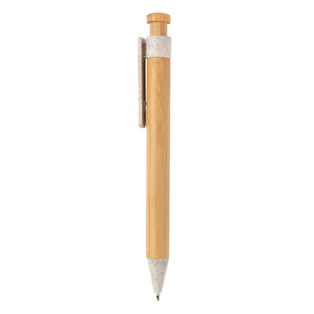 Štýlové pero v pútavom prevedení kombinujúci bambus a prvky z pšeničnej slamy. Kvalitný nemecký atrament v modrej farbe pre až 1 200 m textu. T / C gulička zaisťuje extra príjemné písanie. Zloženie klipu: 40% pšeničná slama / 60% ABS.