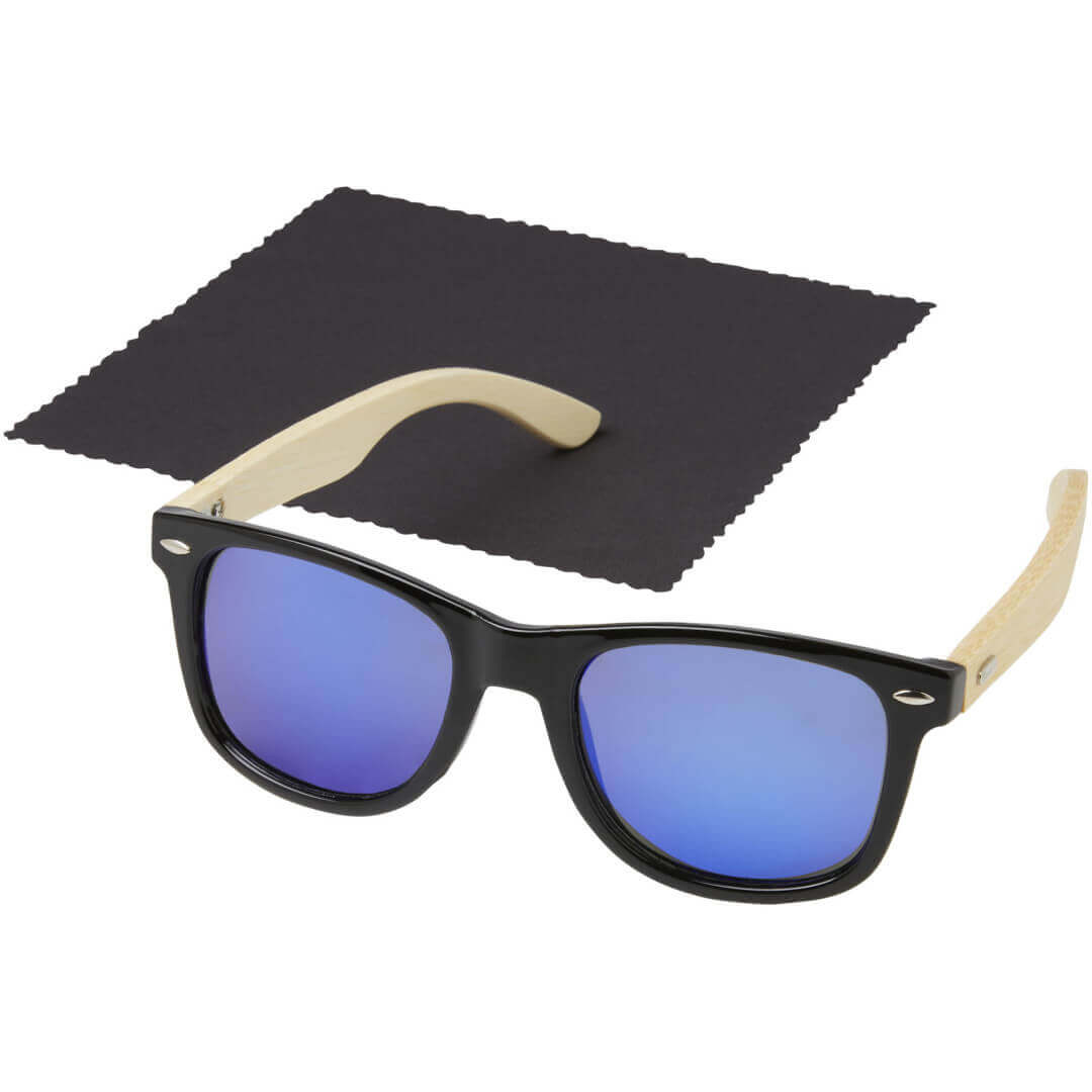 Bambusové/rPET slnečné okuliare Taiyō sú vyrábané z udržateľných materiálov s najvyššími štandardmi kvality. Špičkový rám je leštený a lakovaný a je vyrobený z recyklovaného PET plastu. Ľahké obrúčky komfortného tvaru sú vyrobené z bambusu, ktorý je získavaný z udržateľných, ekologicky a spoločensky zodpovedných zdrojov. Šošovky sú zrkadlovo modré a sú polarizované, eliminuje sa tak odraz slnečného svetla. Sú teda ideálne pre riadenie automobilu aj pre akékoľvek letné a zimné vonkajšie slnečné aktivity. Tieto okuliare spĺňajú normu EN ISO 12312-1, majú šošovky UV400, ktoré sú klasifikované ako kategória 3. Dodávajú sa s čistiacou handričkou vyrobenou z recyklovaného PET plastu (15 × 15 cm) a zabalené v darčekovej krabičke z recyklovanej lepenky (16,5 × 6 × 4 cm). Ako možnosť udržateľnej dekorácie sa odporúča laserové gravírovanie.