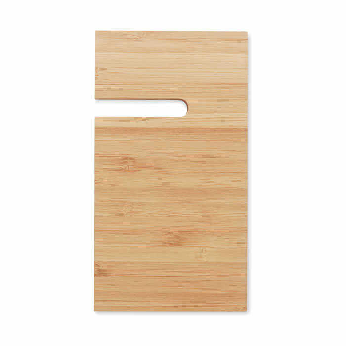 Bambusový stolný stojan na telefón s kancelárskymi sponkami a samolepiacimi bločkami. Organizovaná kancelária je produktívna kancelária. Udržujte svoj pracovný stôl v čistote a používajte organizér, ktorý vám umožní ukladať menšie kancelárske potreby na jedno miesto. Tento bambusový stojan má aj držiak na váš chytrý telefón. Bambus je prírodný materiál, pri každom jednotlivom kuse sa môžu vyskytnúť drobné odchýlky vo farbe a veľkosti, ktoré môžu mať vplyv na finálnu podobu potlače. Veľkosť 9x16,5x0,8 cm.