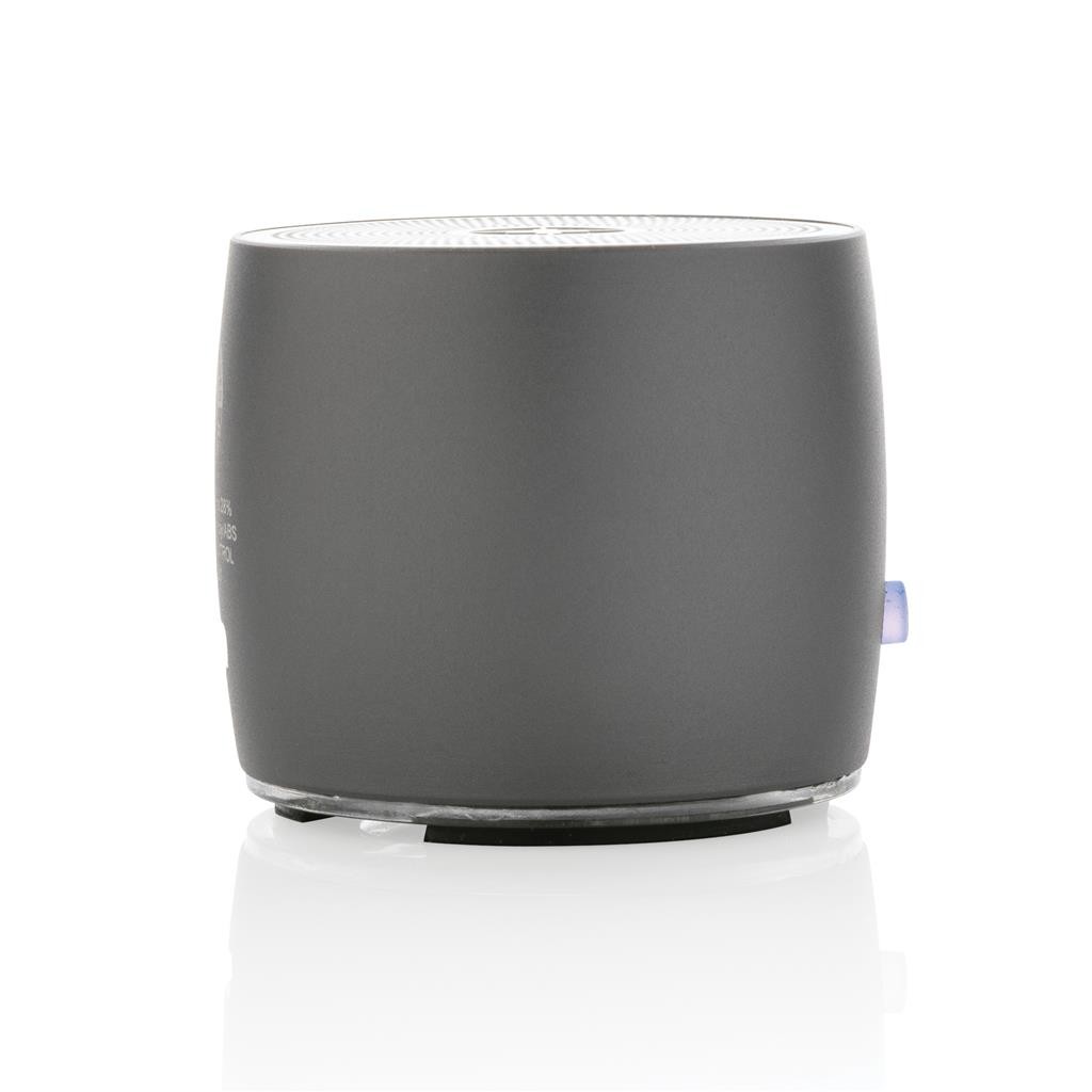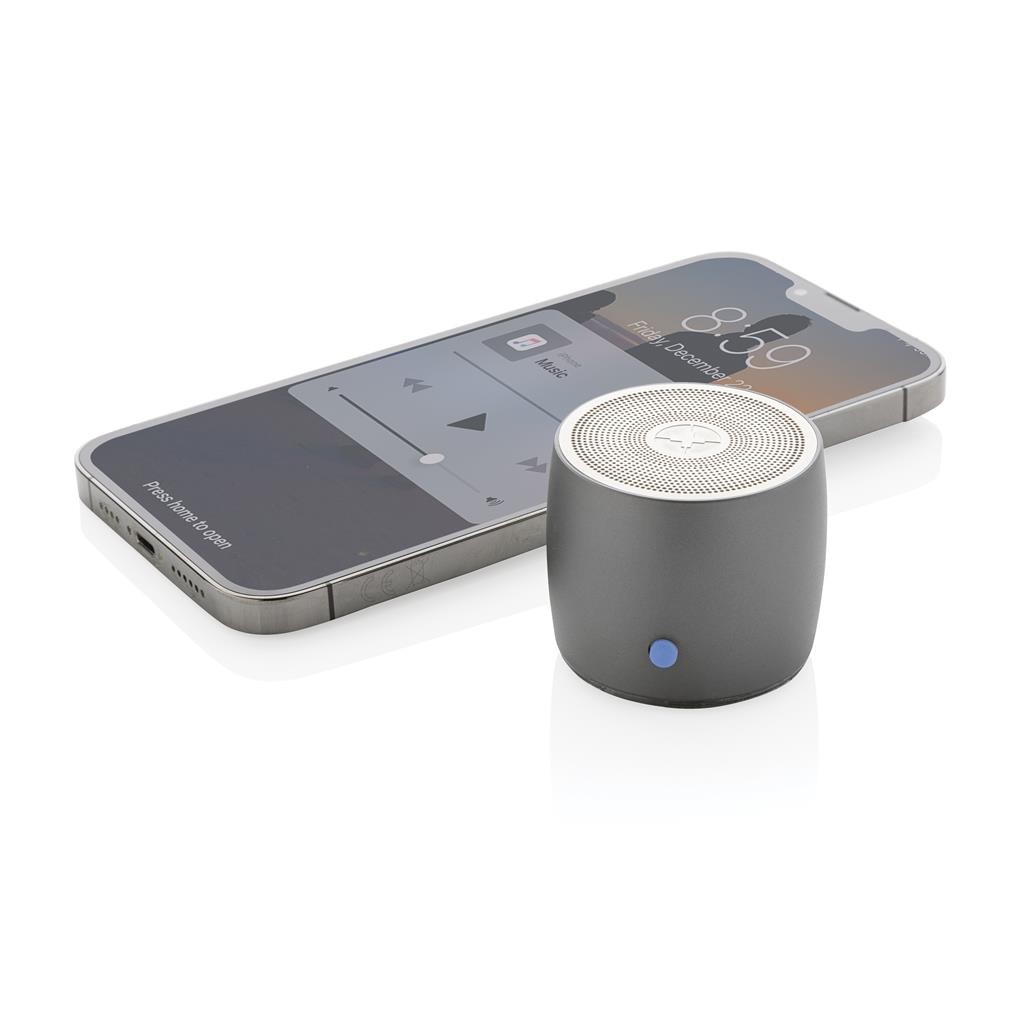 Kompaktný 3W reproduktor s prekvapivo čistým zvukom s plným rozsahom. Driver v spodnej časti pre extra zvýraznenie basov. Vyrobený z kvalitnej RCS recyklovanej nerezovej ocele dodávajúcej masívny vzhľad. RCS (Recycled Claim Standard) je globálny štandard, ktorý umožňuje overiť použitie recyklovaného materiálu v produkte naprieč celým dodávateľským reťazcom. Celkový podiel recyklátu podľa váhy produktu: 28%. Hliník pri recyklácii nijako nestráca svoje vlastnosti, možno ho teda opakovane recyklovať. Batéria s kapacitou 500 mAh umožňuje počúvanie po dobu až 4 hodín. Plné nabitie už za 2 hodiny. BT 5.0 pre kvalitné bezdrôtové pripojenie na vzdialenosť až 10m. Vrátane USB C nabíjacieho kábla z RCS recyklovaného TPE. Balené v FSC® darčekovej krabičke Swiss Peak. 1 batéria typu Li-poly súčasťou balenia.