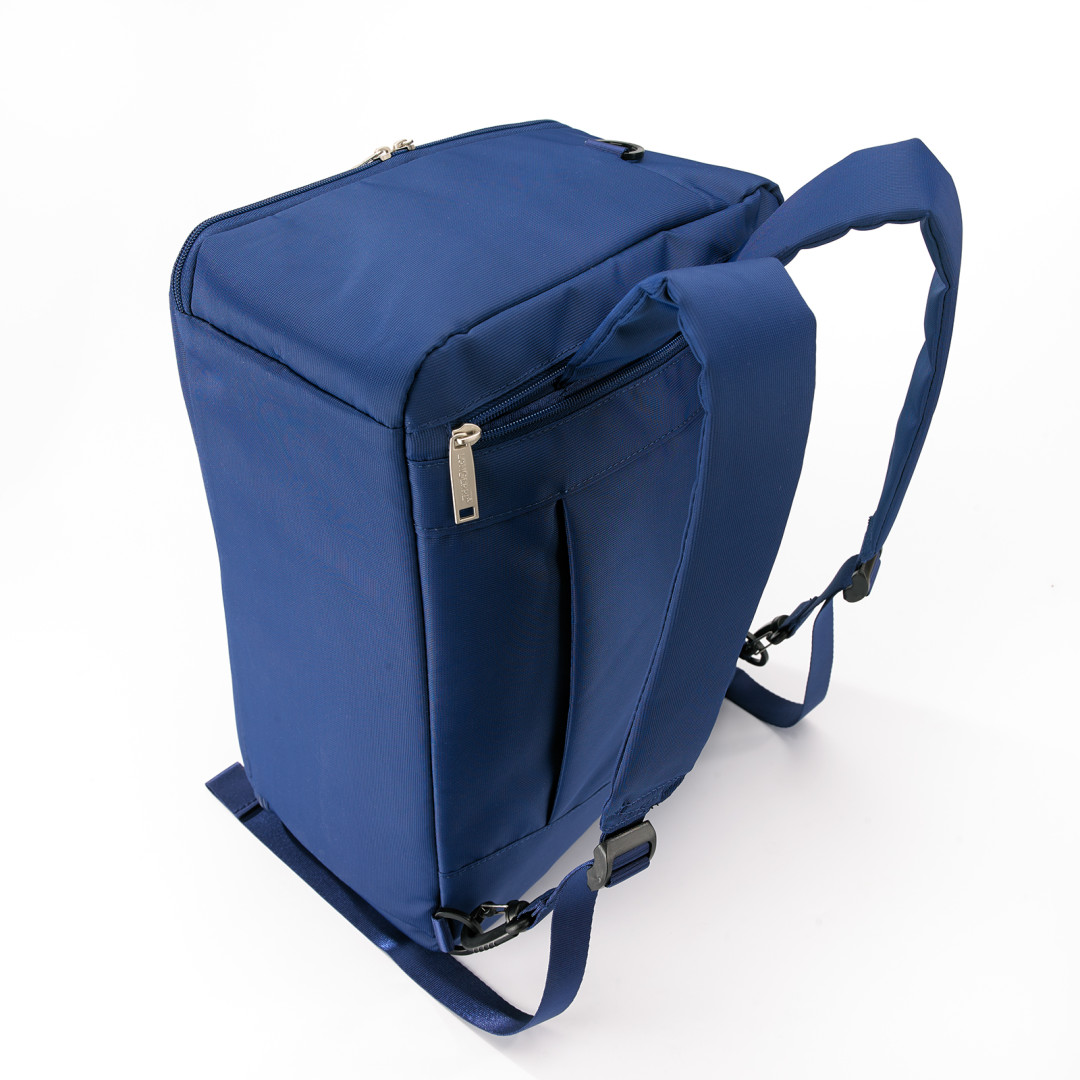 2 produkty v 1: batoh a príručná taška Mistral. Ľahké a priestranné, s popruhmi vo vnútri. Má zaťahovacie traky, odnímateľný nastaviteľný ramenný popruh a popruhy na zapínanie. Má tiež priestrannú hlavnú priehradku a vonkajšie vrecko uzatvárateľné zipsom. Vyrobené z odolného materiálu, odolného voči oderu.