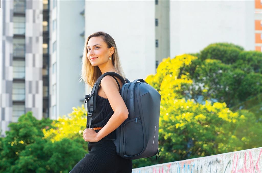 Batoh Bizz je ideálny na každodenné nosenie alebo krátke cesty. Je vybavený 180º otváraním hlavného priestoru s možnosťou rozšírenia, vnútornými sieťovanými vreckami, integrovaným tech vreckom, odnímateľným pútkom na kľúče. Zadné vrecko je chránené vodeodolným zipsom a obsahuje polstrovaný oddiel pre až 16" notebook. K dispozícii je množstvo ľahko prístupných vonkajších vreciek, vysokokapacitné vrecko na magnet na fľašu. Vodeodolný materiál vyrobený z recyklovaného polyesteru vrátane skenovateľnej zložky AWARE™ garantujúce obsah recyklátu.