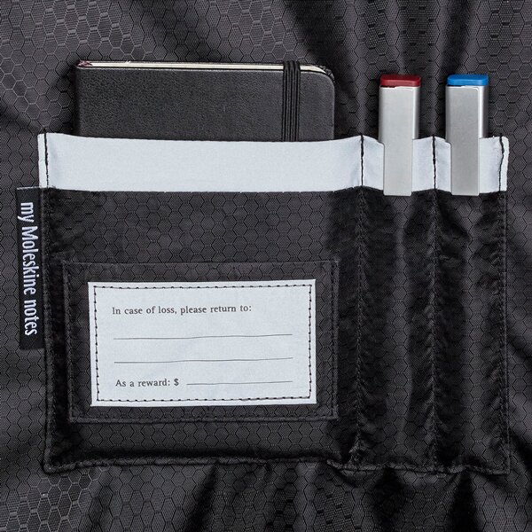 Moderný mestský batoh vhodný na bezpečné uloženie potrebných vecí. Vodeodolný nylon s reflexným logom Moleskine. Hlavné vrecko so zatváraním na zips, predný poklop zaistený pomocou magnetických patentiek.