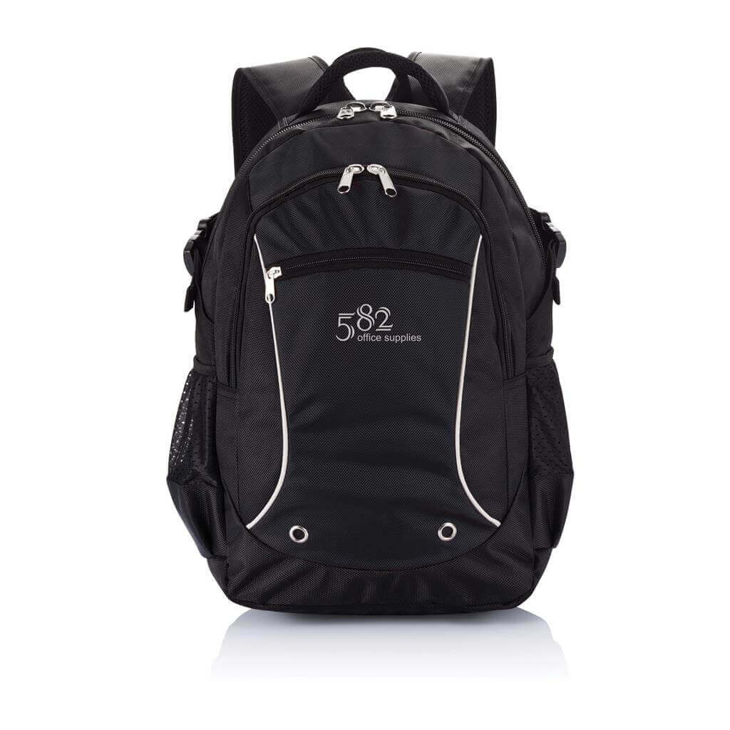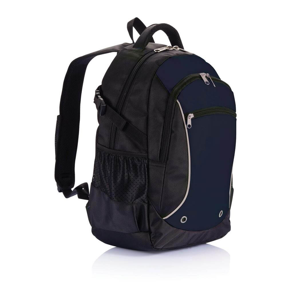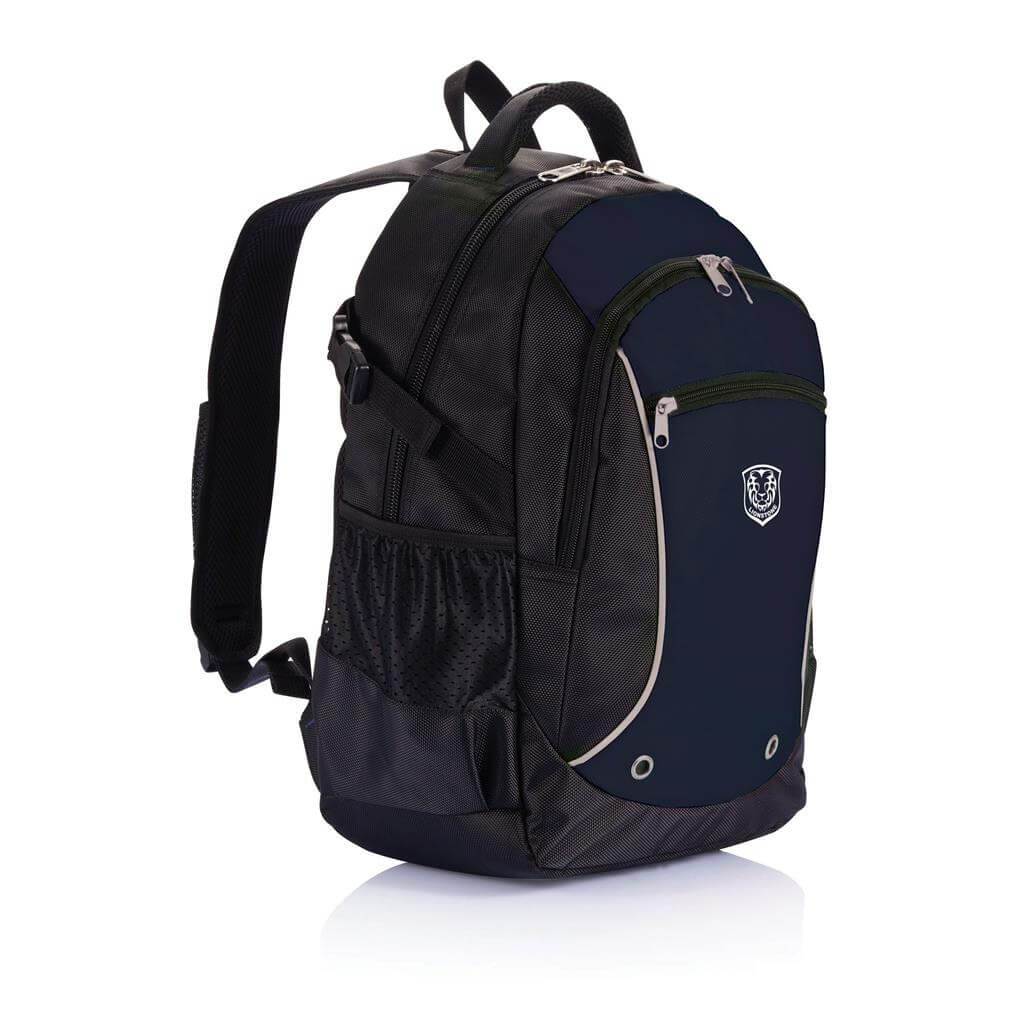 Batoh z materiálu 1680D a žakár. Predné vrecko na zips s organizérom. Hlavný oddiel na zips s vystuženým vreckom na 15,6 "notebook. Reflexné lemovky. Dve bočné sieťované vrecká. Bez PVC.