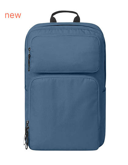 Priestranný hlavný oddiel s dvojcestným zipsom | Polstrované vrecko na notebook | 2 predné vrecká na zips | Dve bočné vložené vrecká | Polstrované popruhy na chrbte a ramenách s výškovo nastaviteľným popruhom na hrudi | Ucho | Dodávka bez dekorácie/obsahu.