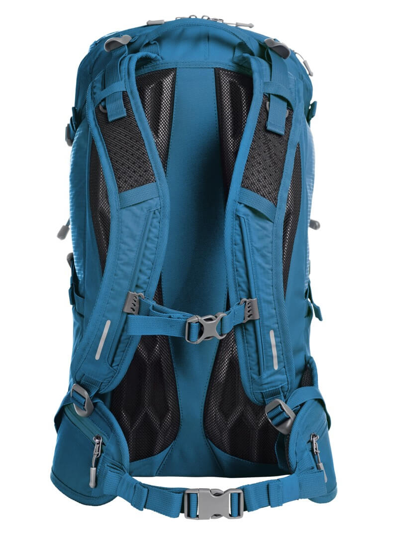 rPET 150D/600D Ripstop | Ľahký, funkčný batoh s ergonomicky tvarovaným chrbtom a inovatívnym systémom včelieho plástu pre optimálne vetranie a polstrovanie, nastaviteľný v hornej a dolnej časti, aby perfektne pasoval | Výškovo nastaviteľný hrudný pás | Polstrovaný popruh s vreckami na zips | Veľká priehradka s dvojcestným zipsom a ploché vložené vrecko na vnútornej strane | Zadný otvor vhodný pre slúchadlá alebo trubicu voliteľného pitného systému (položka HF2216) | Zapínanie na suchý zips pre trubicu na pitie | 2 predné vrecká na zips | 2 sieťované bočné vrecká | Bočné upínacie popruhy | Pútko na prednom vrecku | Dekoratívna reflexná potlač | Upevnenie turistických paličiek | Základný oddiel s obalom proti dažďu | Ucho | Obsah/dekorácia nie sú súčasťou balenia