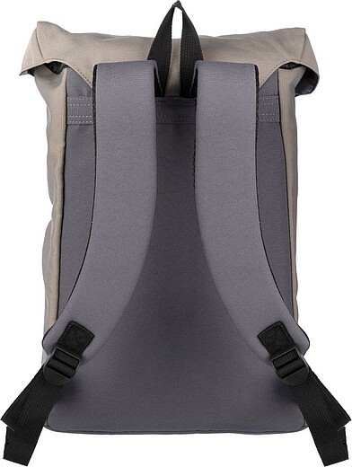 Polyesterový (600D) batoh s PU (210D) podšívkou a dnom a chrbtom z PE peny (8 mm). Veľká priehradka so sťahovacou šnúrkou so zapínaním na pracku a vreckom na notebook (15 palcov). Predné vrecko s kovovými gombíkmi. Nastaviteľné popruhy. Materiál: polyester. Rozmery: 29 x 15 x 40 cm