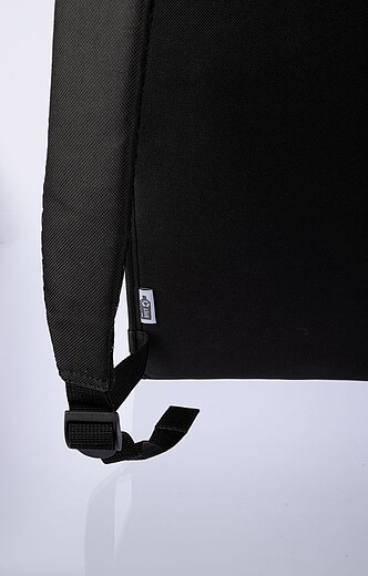 Polyesterový nepremokavý batoh z materiálu Oxford s úplne plochou prednou časťou. Batoh má vrecko na notebook (15 palcov) a vnútri sieťované vrecko s nastaviteľnými popruhmi. Súčasťou je PU pútko a PU magnet. Materiál RPET. Rozmery: 29 x 9 x 43 cm
