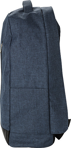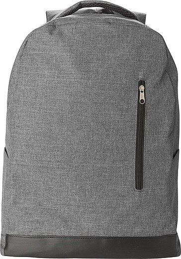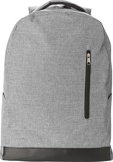 Polyesterový batoh RPET (600D) s ochranou zipsu proti krádeži. Malé vrecko na zadnej aj prednej strane, priehradky na fľaše na boku, popruh na teleskopické madlo kufra, priehradka na notebook so zapínaním na suchý zips a nastaviteľné popruhy. Detaily na spodnej strane sú vyrobené z recyklovaných pneumatík automobilov.