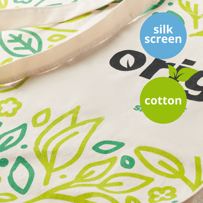 Taška je vhodná na celoplošnú plnofarebnú potlač (sieťotlač alebo digitálna tlač) od okraja po okraj, až do 70 % povrchu potlače.