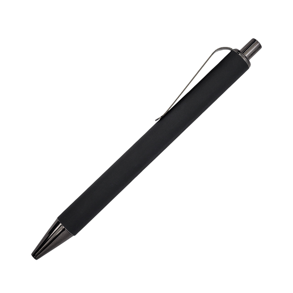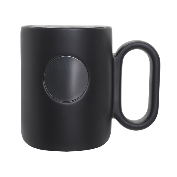Darčeková sada s keramickým hrnčekom, guličkovým perom a zápisníkom. Keramický hrnček s objemom 480 ml s matným čiernym povrchom a kovovým plieškom vo farbe gun metal; len ručné umývanie. Zápisník s pevnými doskami, 80 štvorčekových stránok (70 g/m2), kovový prvok a páska na založenie stránky. Guľôčkové pero z hliníka s čiernym telom, klipom vo farbe gun metal a modrou náplňou. Sada je balená v štýlovej darčekovej krabičke.
