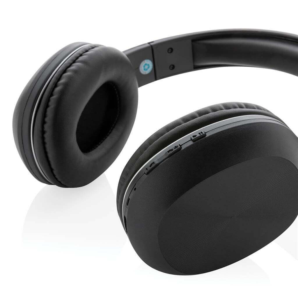 Moderní bezdrátová sluchátka vyrobená z lehkého RCS recyklovaného ABS plastu. RCS (Recycled Claim Standard) je globální standard, který umožňuje ověřit použití recyklovaného materiálu v produktu napříč celým dodavatelským řetězcem. Celkový podíl recyklátu dle váhy produktu: 73 %. Pohodlné měkké náušníky a polstrovaná část přes hlavu z PU. Náušníky překrývající uši zajišťují optimální zvukový zážitek bez okolního ruchu. Zabudovaná baterie s kapacitou 200 mAh pro poslech po dobu až 5 hodin na jedno nabití (1,5 hodiny). BT 5.1 pro hladké bezdrátové připojení na vzdálenost až 10m. Mikrofon pro telefonování. Včetně nabíjecího kabelu z GRS recyklovaného TPE. Baleno v FSC® kraftové dárkové krabičce. Produkt i příslušenství bez PVC. 1 baterií typu Li-poly súčasťou balenia.
