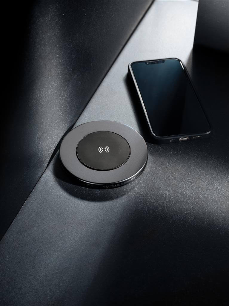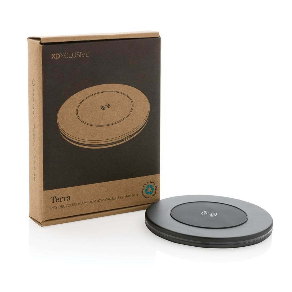Bezdrôtová nabíjačka s výkonom 10 W vyrobená z recyklovaného hliníka, ABS a TPE s RCS certifikáciou. RCS (Recycled Claim Standard) je globálny štandard, ktorý umožňuje overiť použitie recyklovaného materiálu v produkte naprieč celým dodávateľským reťazcom. Celkový podiel recyklátu podľa váhy produktu: 75 %. Hliník pri recyklácii nijako nestráca svoje vlastnosti, možno ho teda opakovane recyklovať. Vrátane 120 cm dlhého USB C nabíjacieho kábla z RCS recyklovaného hliníka, TPE a PET. Vstup: 9V/2A, výstup 9V/1,1A. Balené v FSC® darčekovej krabičke.