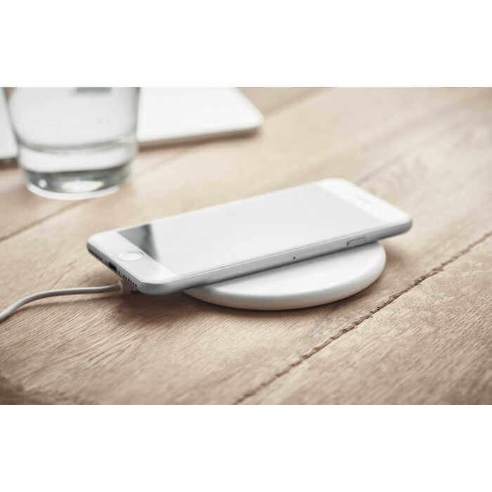 Bezdrôtová nabíjačka z recyklovaného ABS plastu. Pripojte nabíjačku k zdroju energie, položte na ňu smartphone a začnite nabíjať. Výstup: DC 9V / 1,1A (10W) pre rýchle nabíjanie. Kompatibilné s najnovšími telefóny android, iPhone® 8, X a novšími.