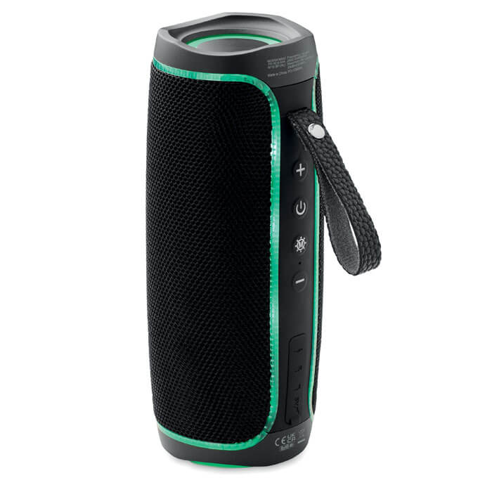Bezdrôtový 2x5w reproduktor odolný proti striekajúcej vode (IPX4) s LED meniacimi sa farbami. Batéria 1800 mAh. Vezmite si tento reproduktor so sebou a počúvajte svoju obľúbenú hudbu na cestách! Pripojte k nemu svoj chytrý telefón alebo iné bezdrôtové zariadenie a pustite si svoje obľúbené skladby nech ste kdekoľvek.