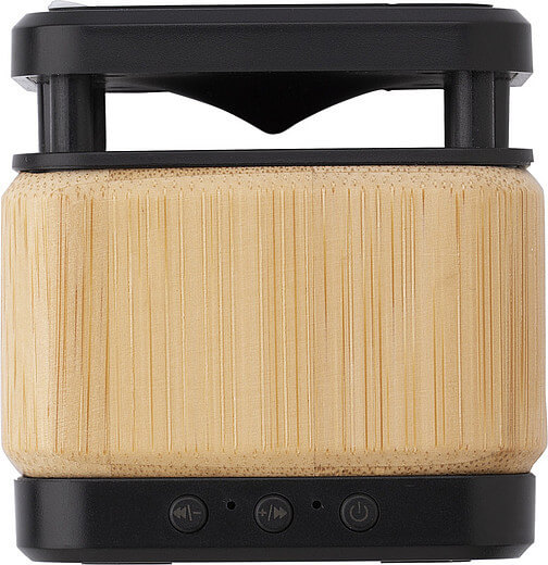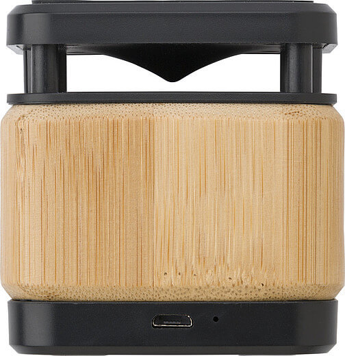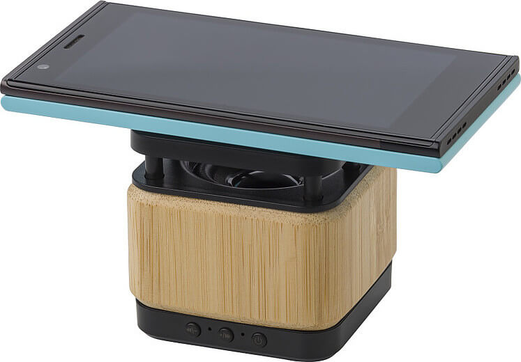 Bambusový a ABS bezdrôtový reproduktor a bezdrôtová nabíjačka mobilného telefónu. Vstup 5V 1,5A. Bezdrôtový výstup 5V 0,8A. 3W reproduktor. 400 mAh batéria. Protišmyková spodná a vrchná časť. Vrátane micro USB - USB nabíjacieho kábla.